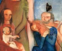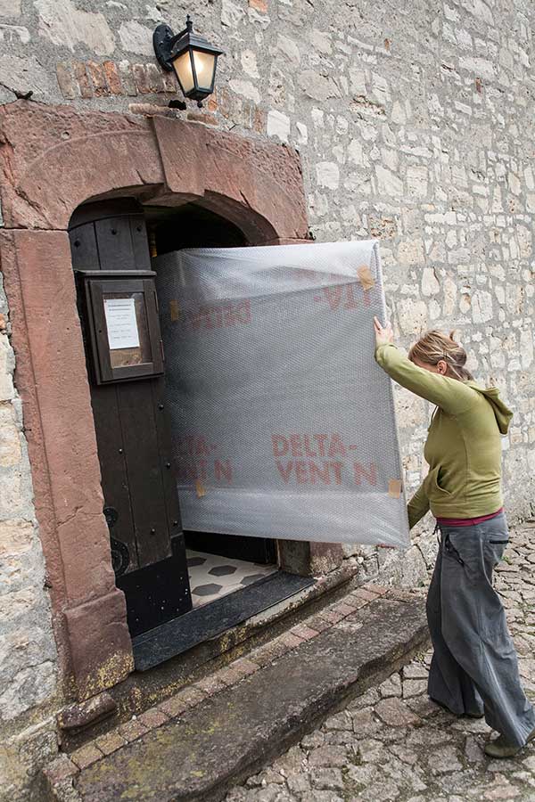 Als uns Christine Leweke, Tochter Fritz Lewekes und die Hüterin des Schatzes, anbot, die Pigmente für die Restaurierung der Deckengemälde zu nutzen, war unsere Freude groß. Die Familien Leweke und Völker waren seit Ende der 1920er Jahre befreundet. Fritz Leweke erwarb 1929 ein kleines Haus in Halle-Kröllwitz, Karl Völker zog nach seiner Rückkehr aus Celle mit der Familie in die Dachwohnung nebst Atelier des Nebenhauses.
